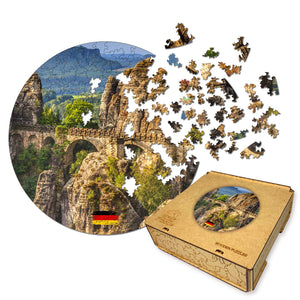 Wooden circular MiMi puzzles "Bastai Rocks and Bridge. Germany"
