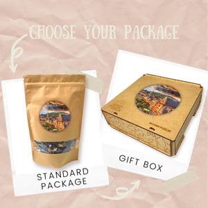 Additionally, there may be a wooden gift box in the theme of puzzles.